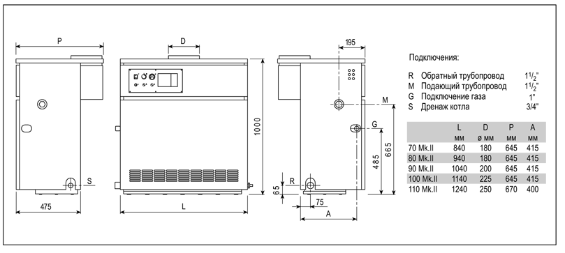 - Система газораспределения Honeywell обеспечивает безопасную работу котла;